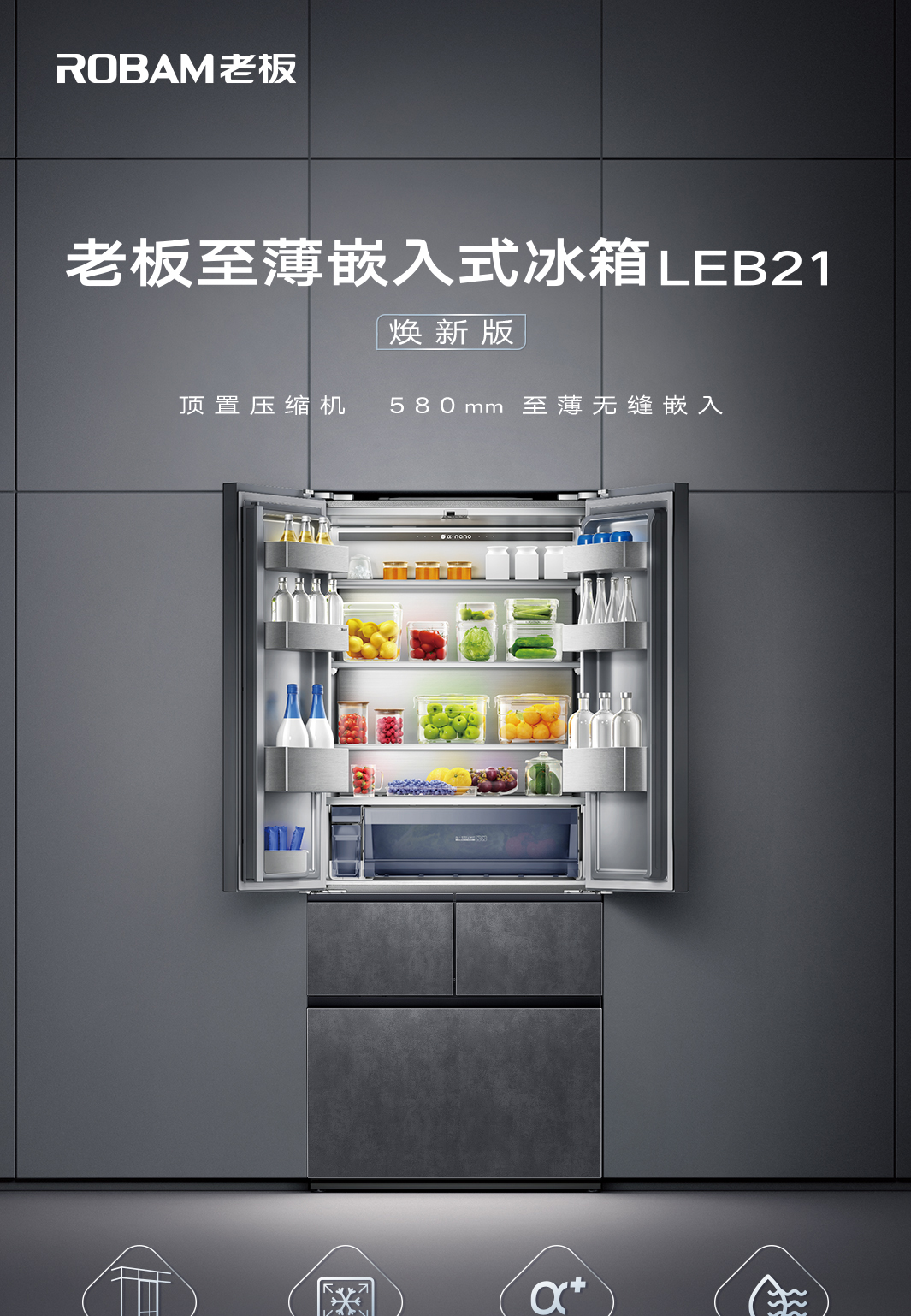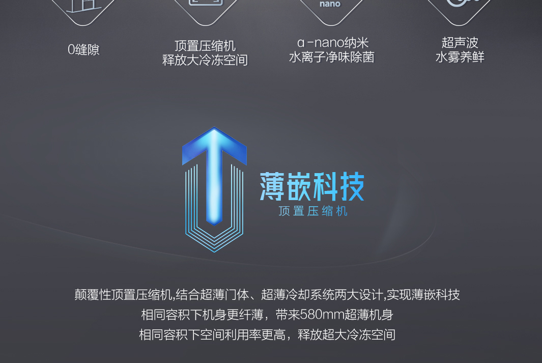 顶置压缩机,580mm至薄无缝嵌入