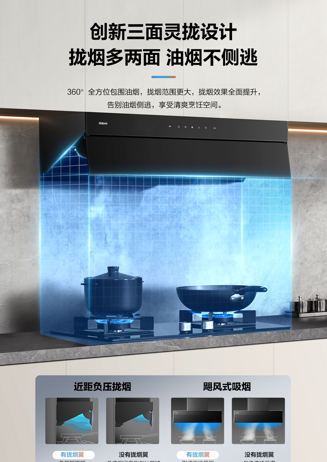 拢烟多两面,油烟不侧逃